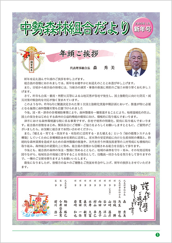 組合事業の成果や組合員サービスのご案内など、中勢森林組合の広報誌です。組合員様向けの情報をお届けしています。
