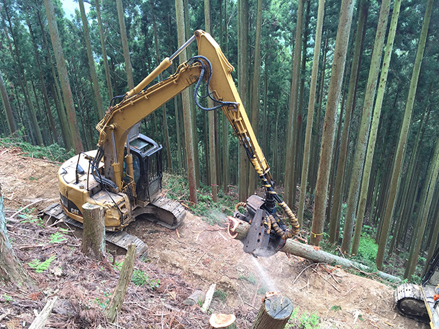 高性能林業機械の活用や高密度路網の整備により、効率的で持続可能な森林管理を進めています。